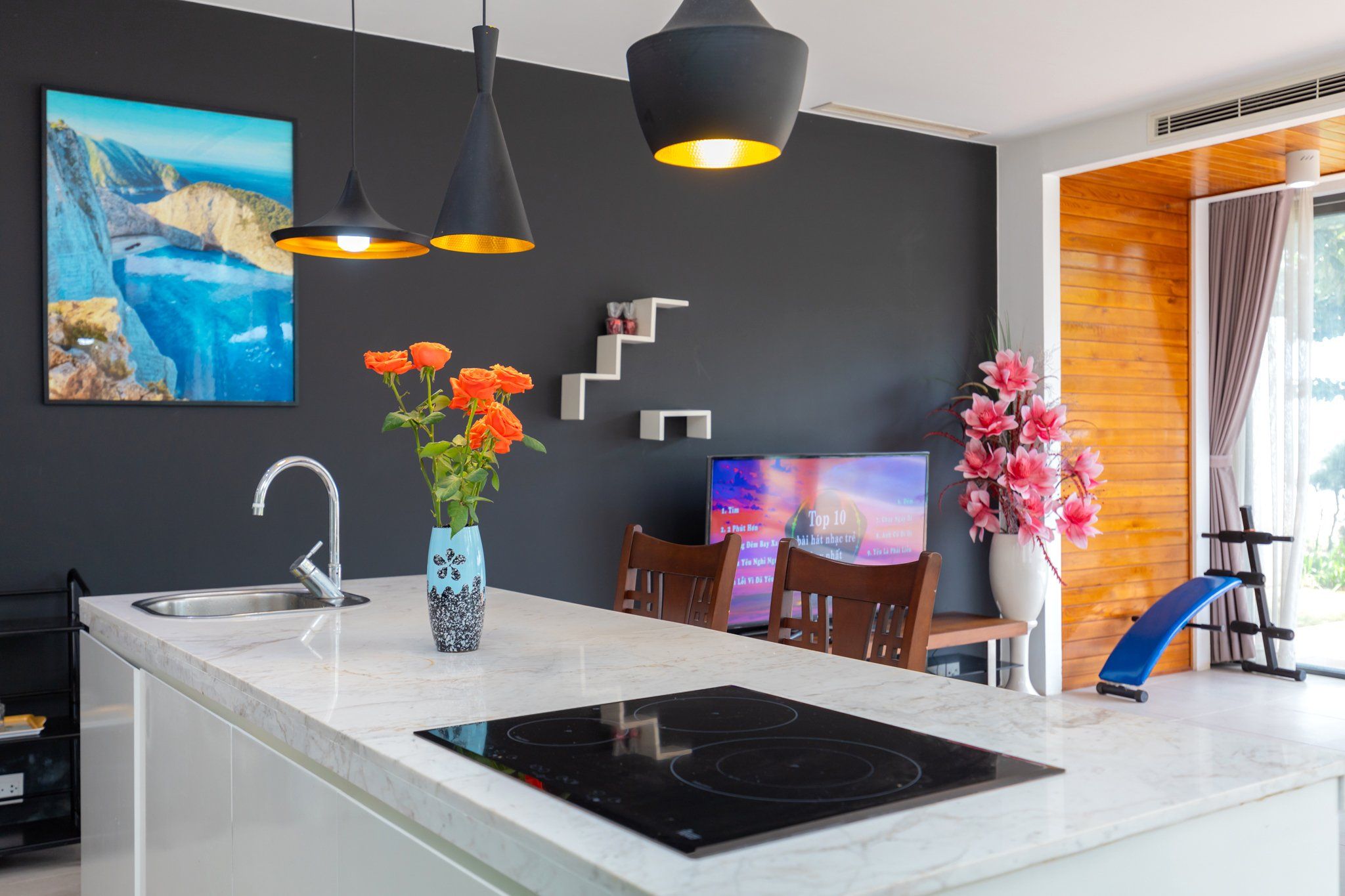 - Khu bếp rộng và đầy đủ đồ gia dụng cần thiết