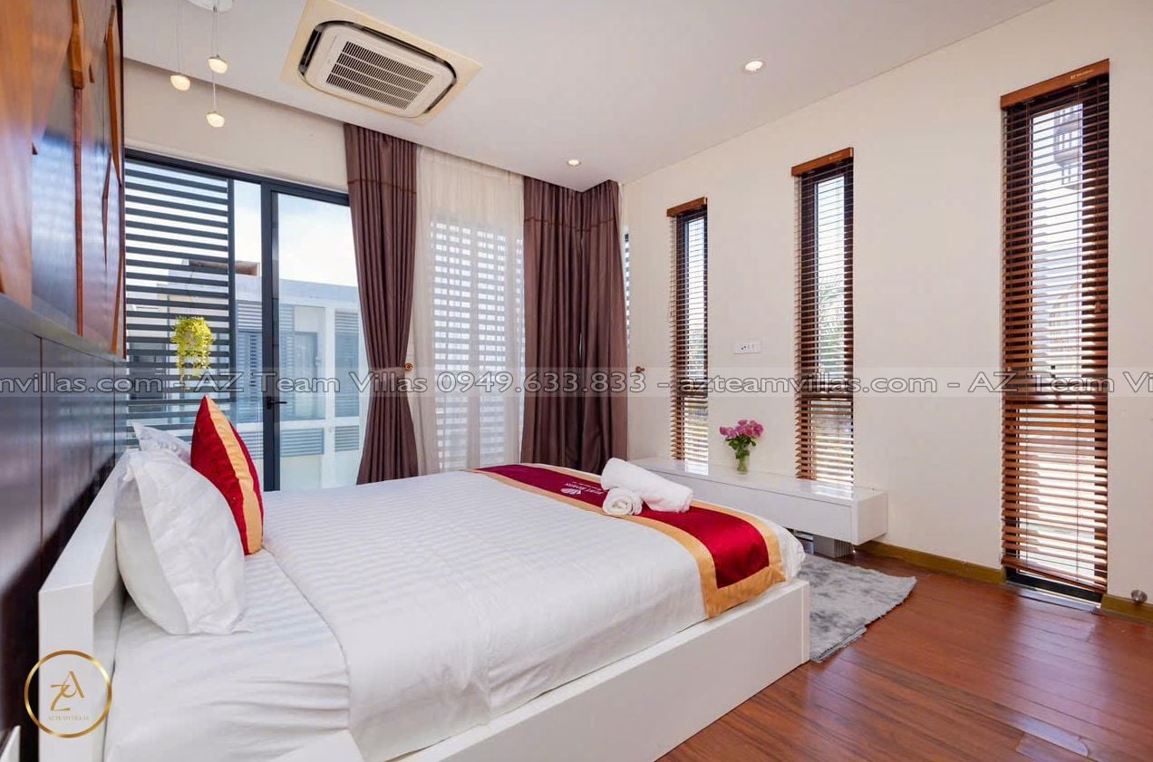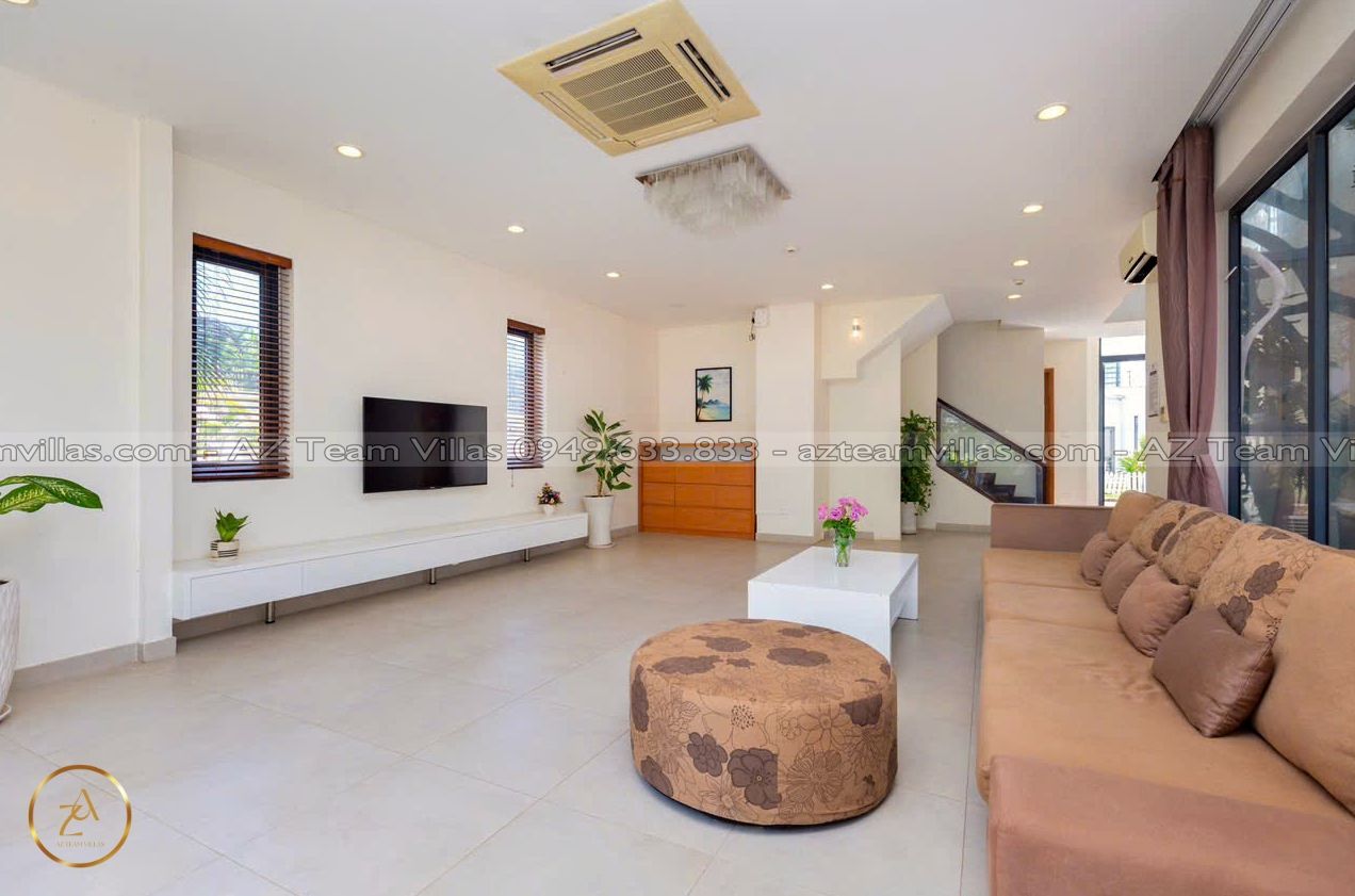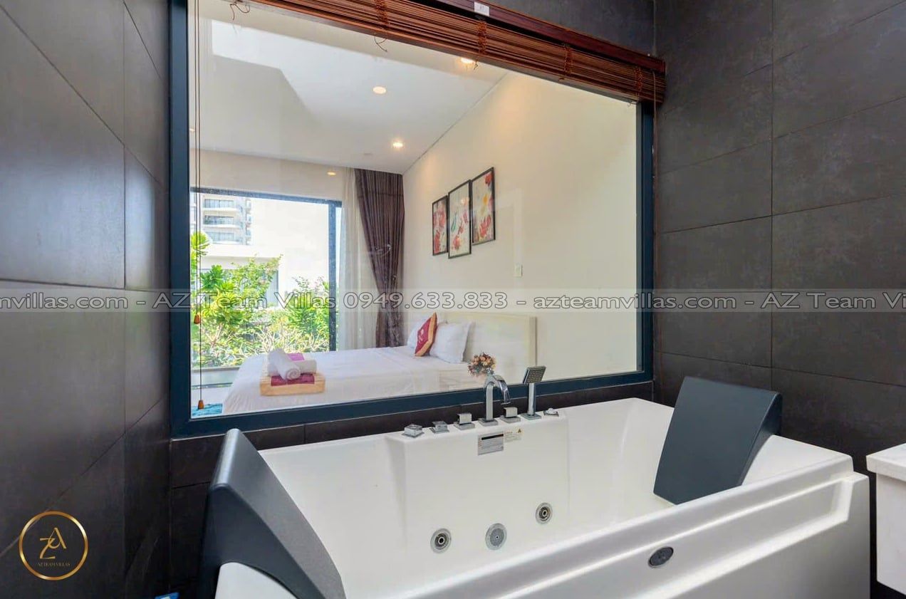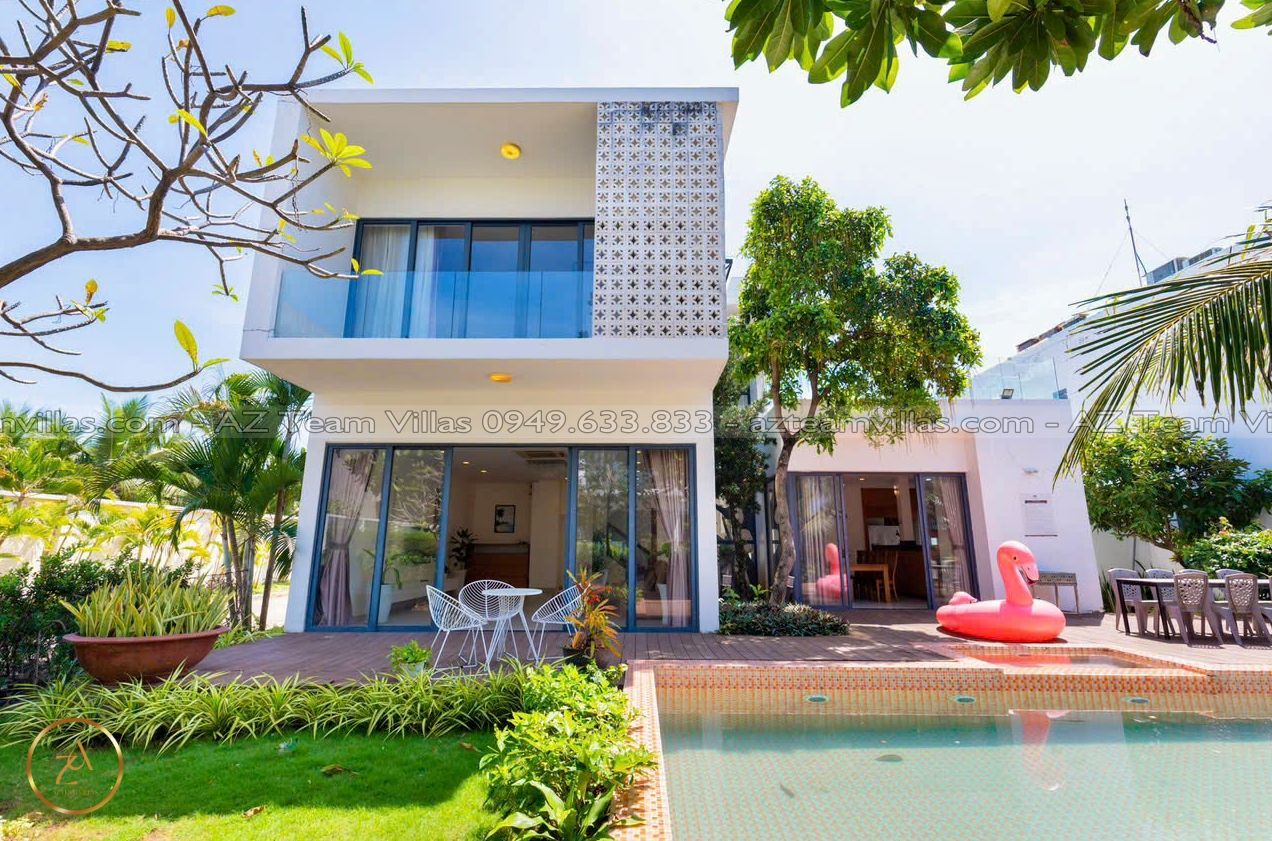 Là một biệt thự sang trọng và hiện đại, nằm trong khu nghỉ dưỡng cao cấp Aria Resort tại Vũng Tàu. Vị trí của villa là một ưu điểm lớn, vì nó nằm sát bãi biển Long Cung, một trong những bãi biển đẹp nhất Vũng Tàu. Từ villa, bạn chỉ cần đi bộ vài bước là có thể tận hưởng cảnh biển xanh mát, cát trắng mịn và nắng ấm áp. Bạn cũng có thể ngắm nhìn hoàng hôn tuyệt đẹp trên biển từ sân thượng của villa.