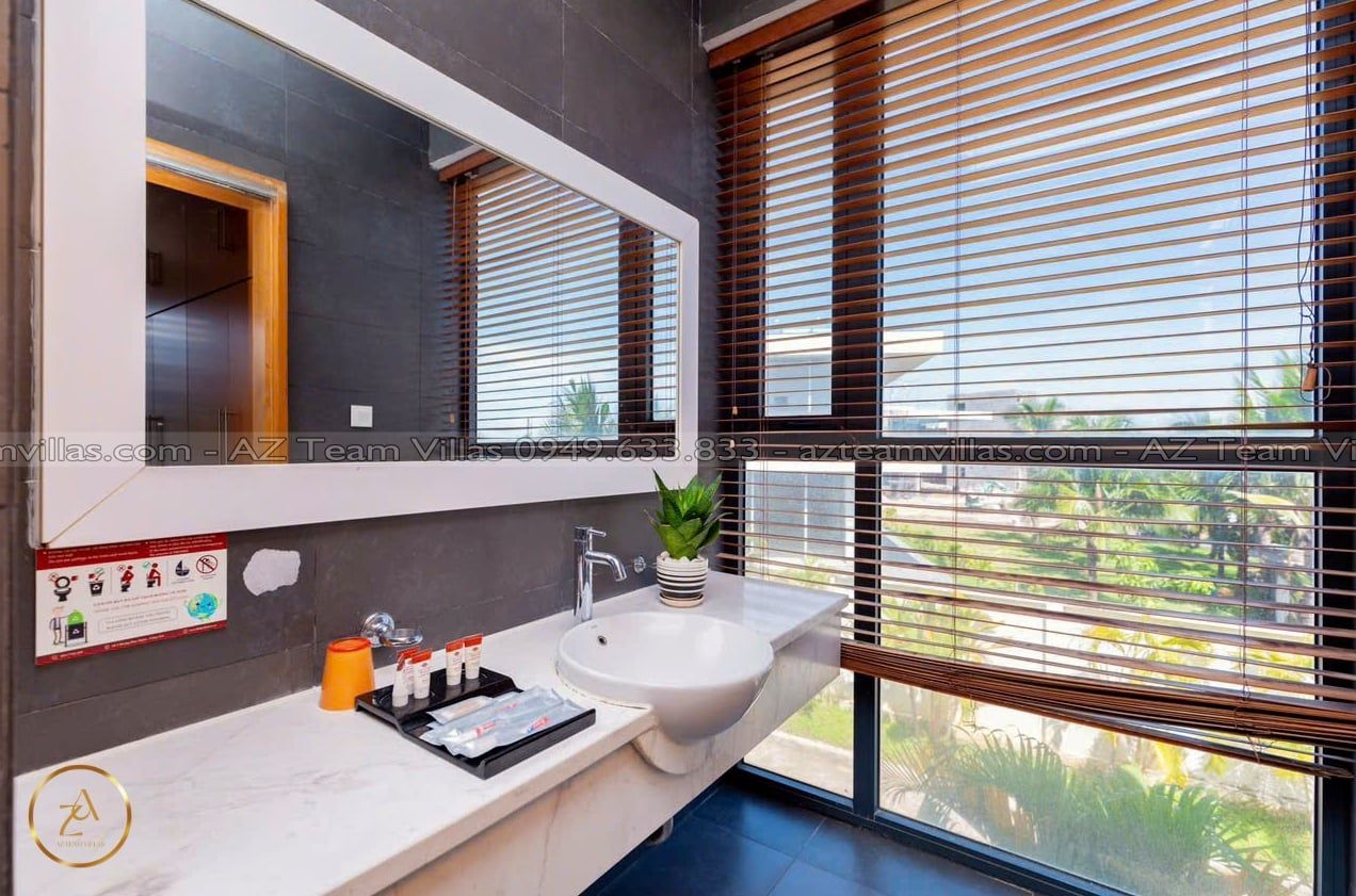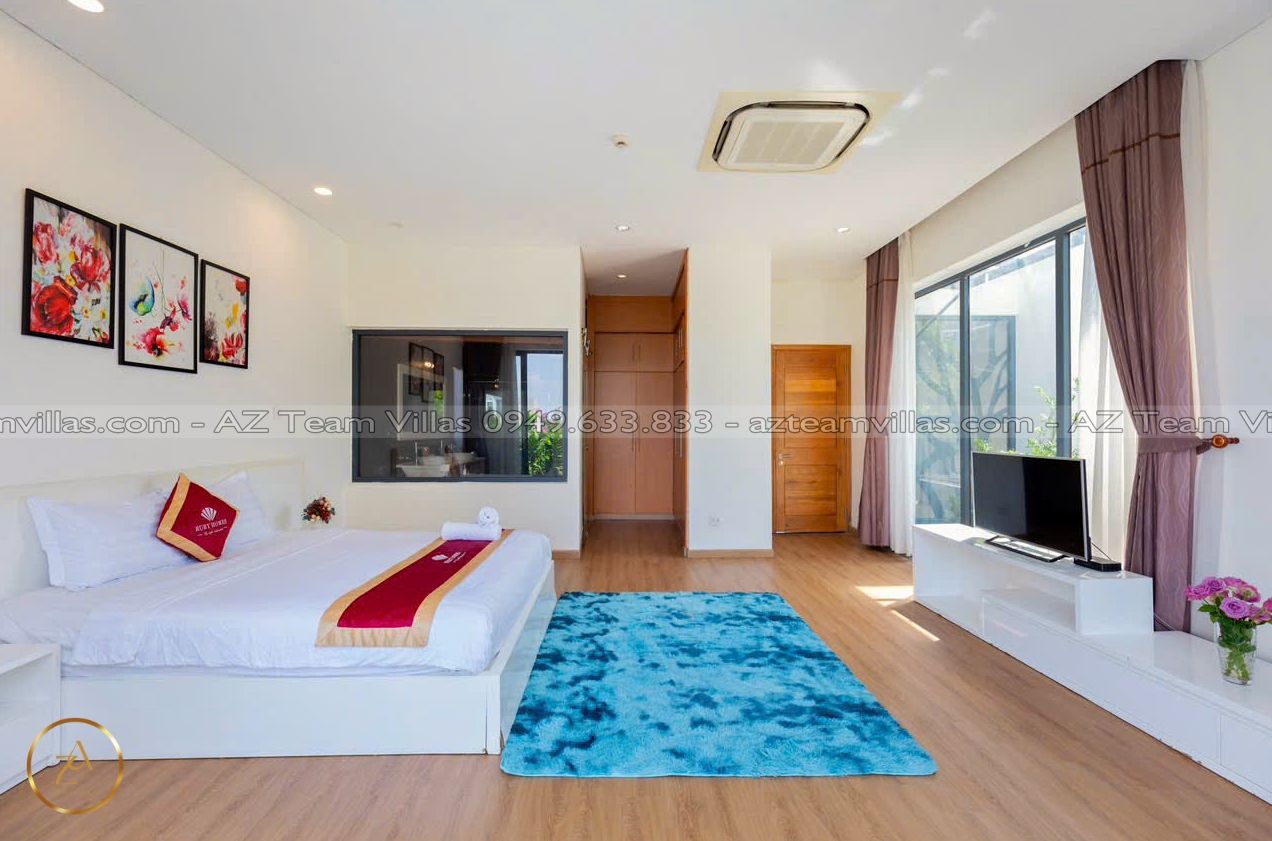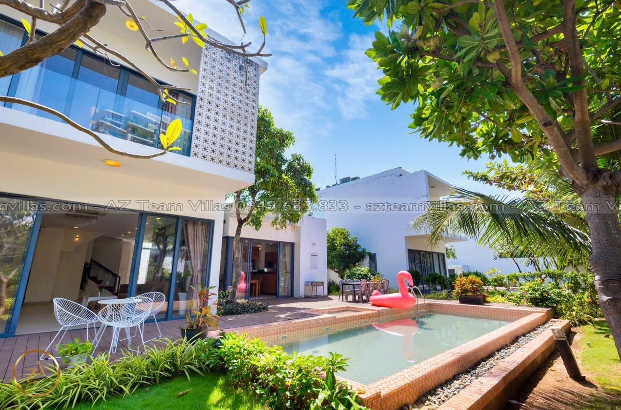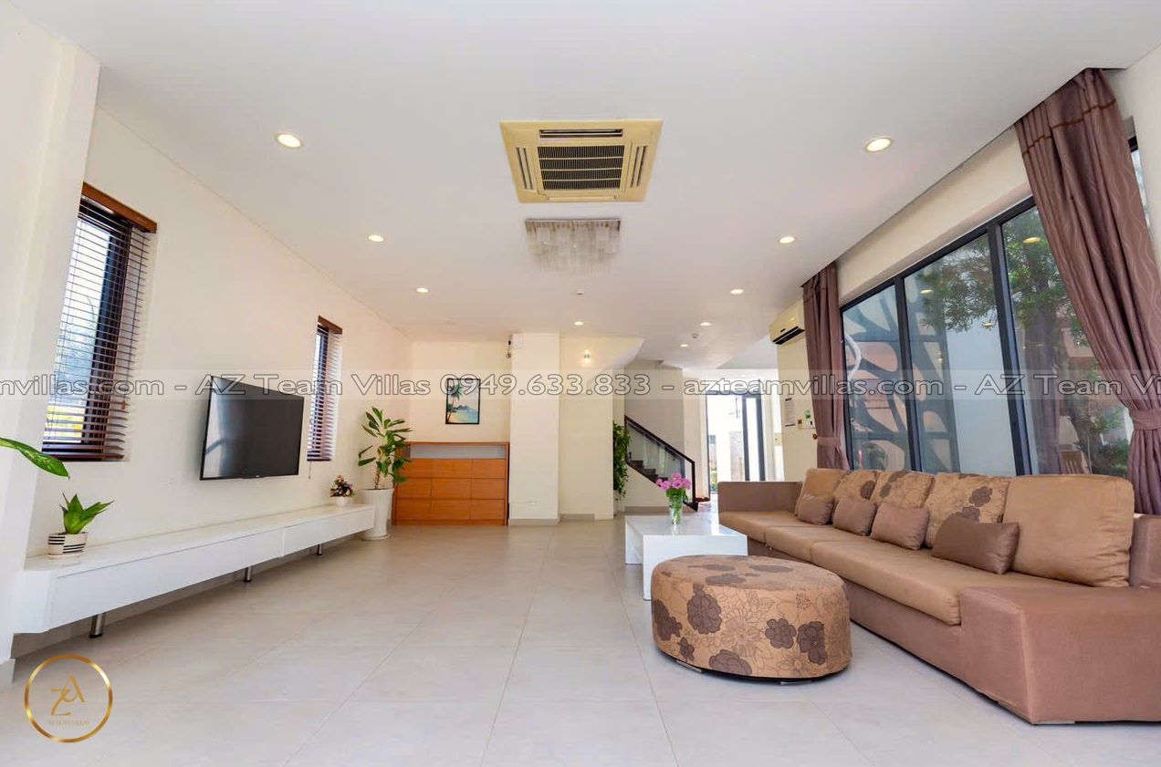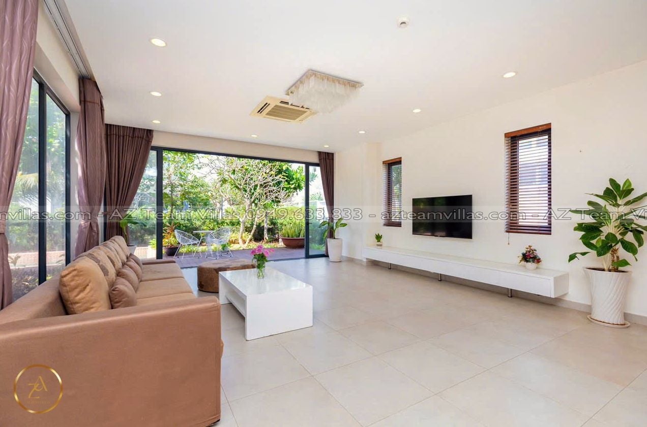 Là một biệt thự sang trọng và hiện đại, nằm trong khu nghỉ dưỡng cao cấp Aria Resort tại Vũng Tàu. Vị trí của villa là một ưu điểm lớn, vì nó nằm sát bãi biển Long Cung, một trong những bãi biển đẹp nhất Vũng Tàu. Từ villa, bạn chỉ cần đi bộ vài bước là có thể tận hưởng cảnh biển xanh mát, cát trắng mịn và nắng ấm áp. Bạn cũng có thể ngắm nhìn hoàng hôn tuyệt đẹp trên biển từ sân thượng của villa.
