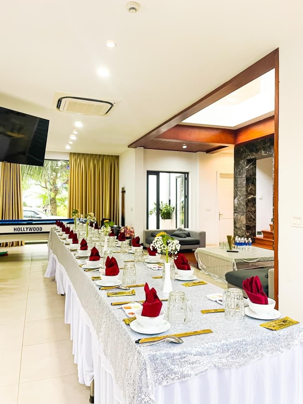 - Sân vườn ngoài trời rộng rãi, thoáng mát đáp ứng nhu cầu tổ chức tiệc BBQ và các hoạt động sinh hoạt ngoài trời.
