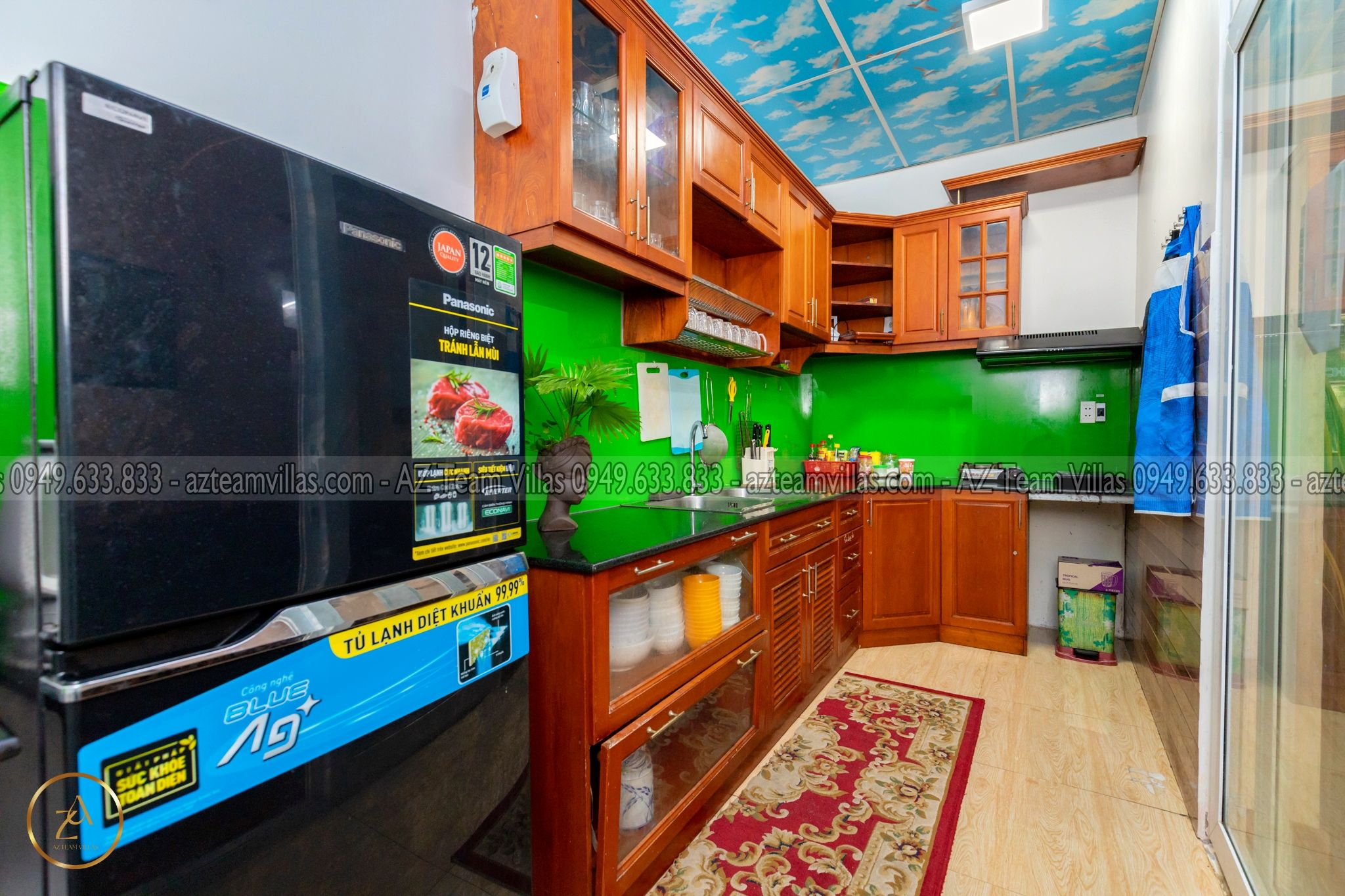 - Khu bếp đầy đủ gia vị, trang bị lò vi sóng, 2 bộ nồi lẩu, bếp từ, ấm siêu tốc...đầy đủ xoong nồi chảo, chén bát sẵn sàng phục vụ đoàn 60 khách