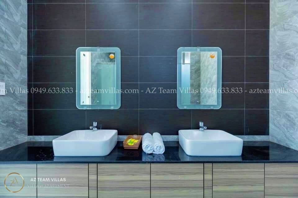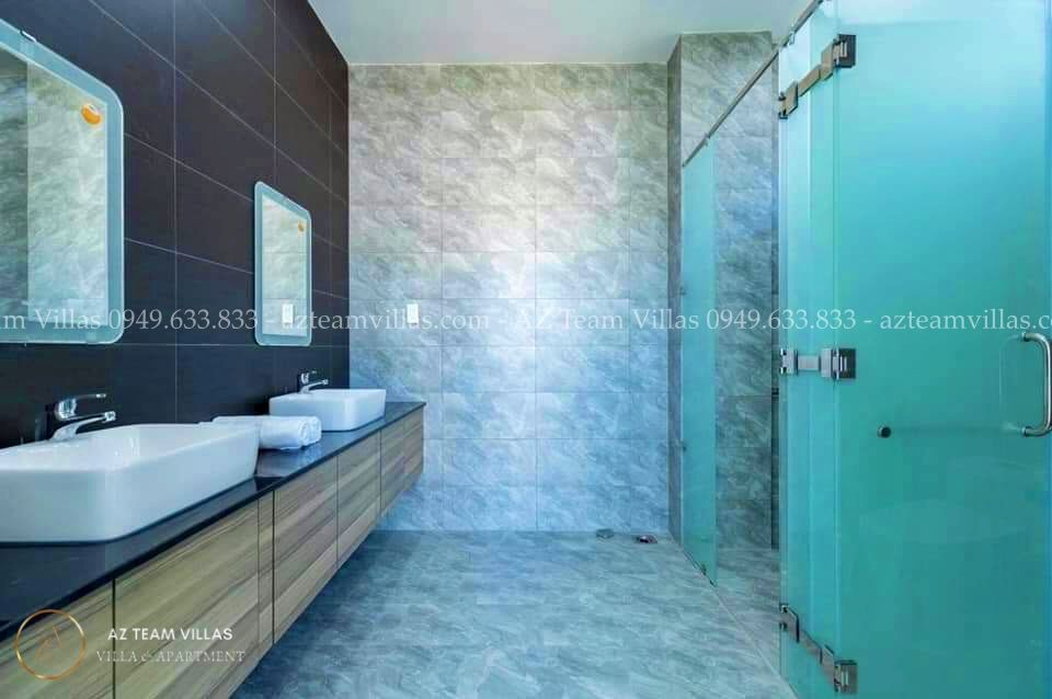 Villa gồm 6 phòng ngủ, 10 giường kích thước 1m8 và 8 WC (6 wc trong phòng ngủ, 1 wc tại phòng Khách và 1 wc tại sân thượng)"