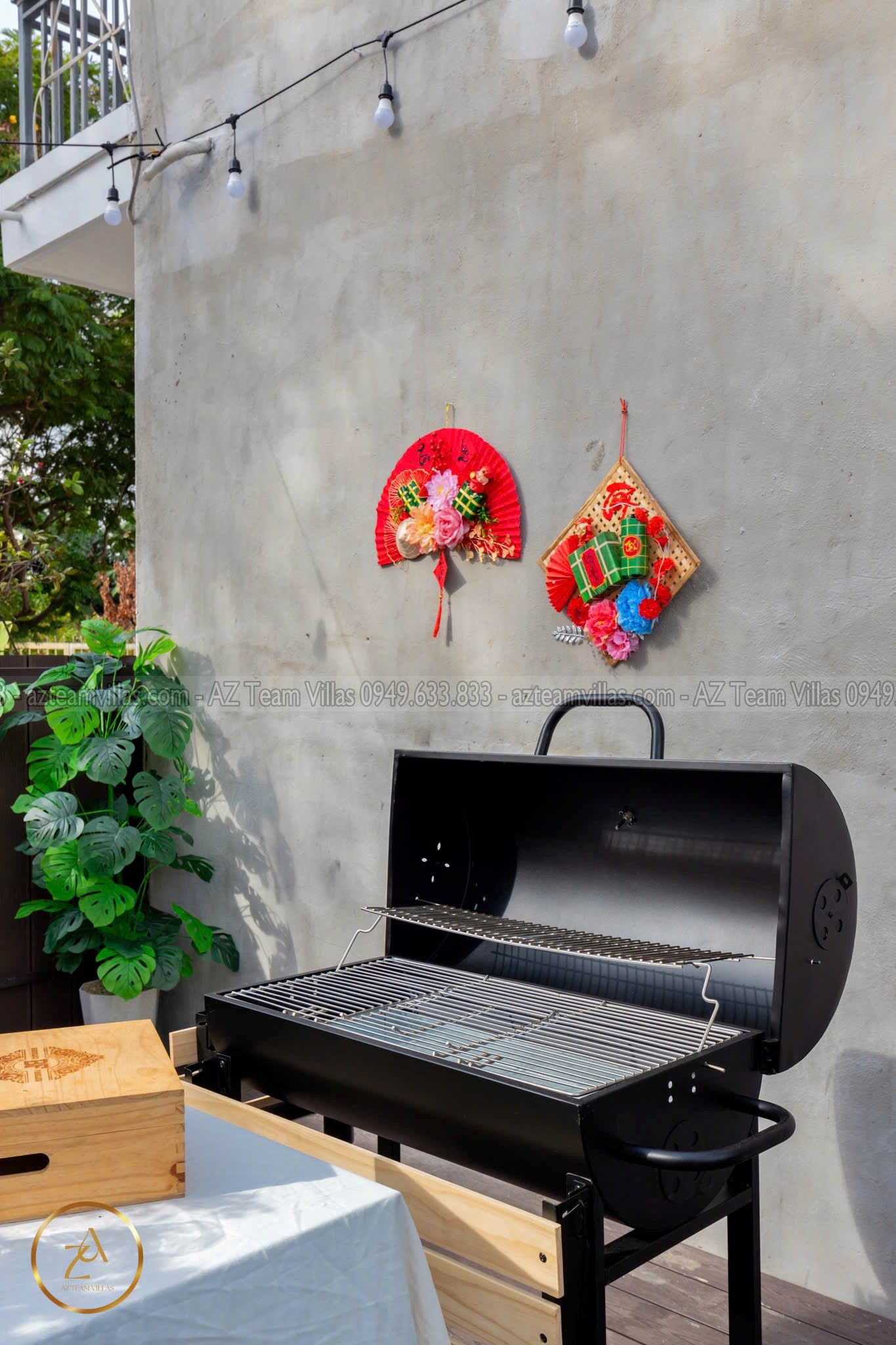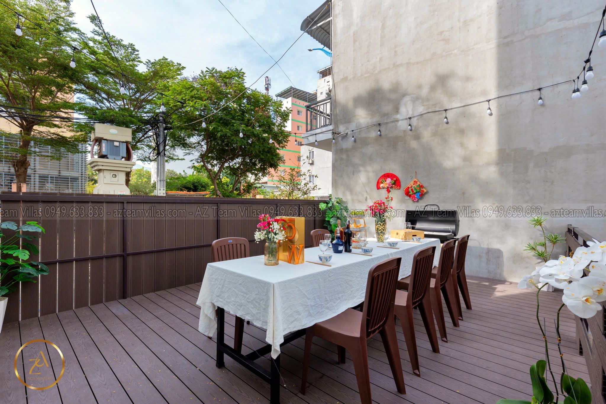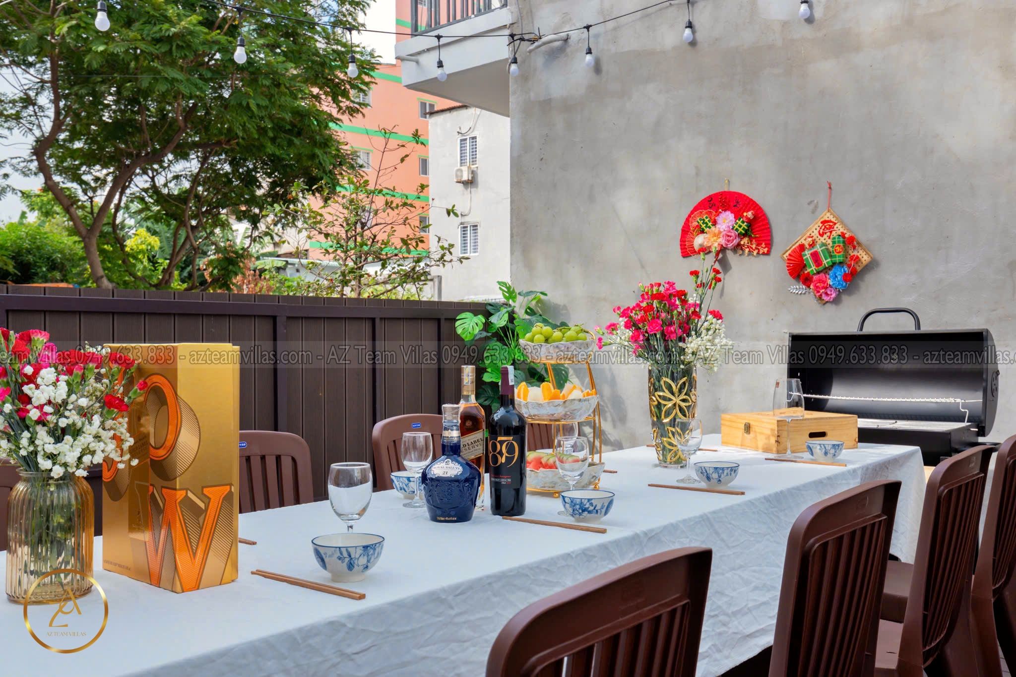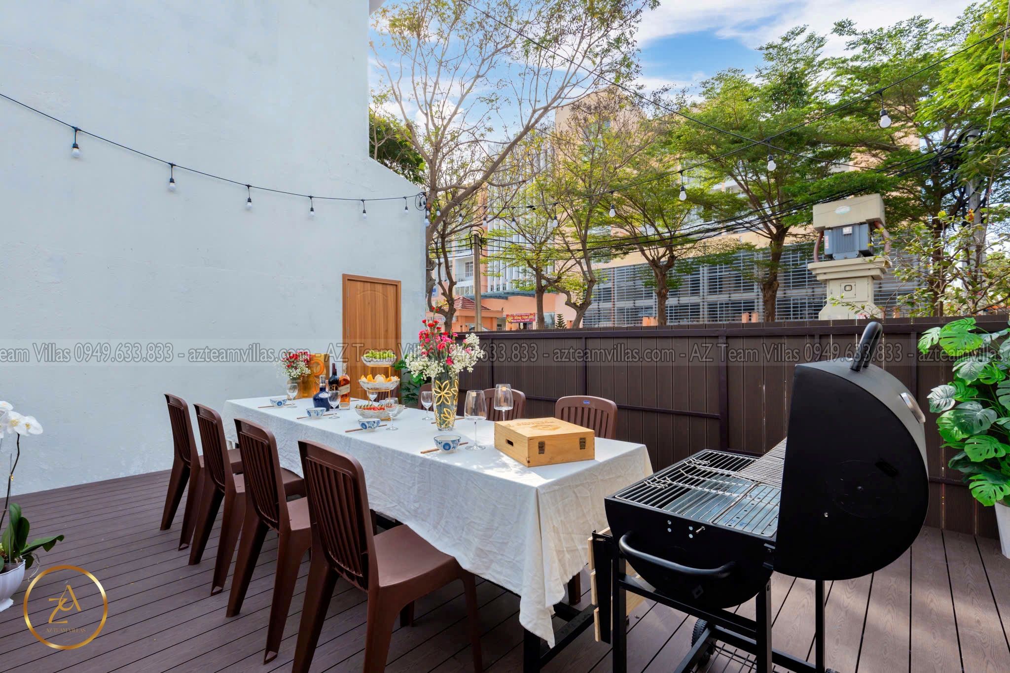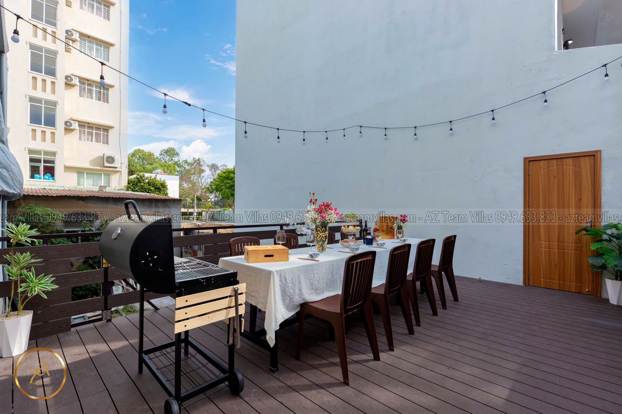 🔥 Sân BBQ ngoài trời rộng rãi, có lò nướng lớn.