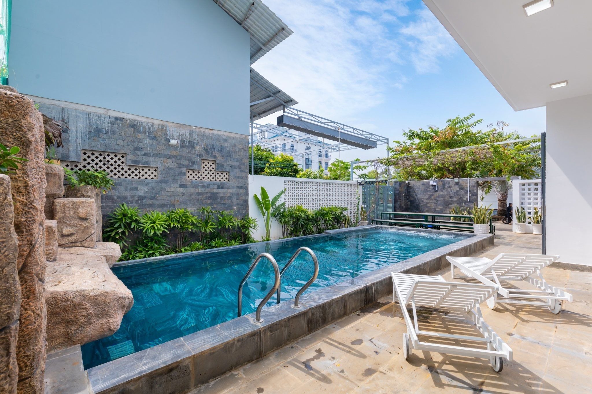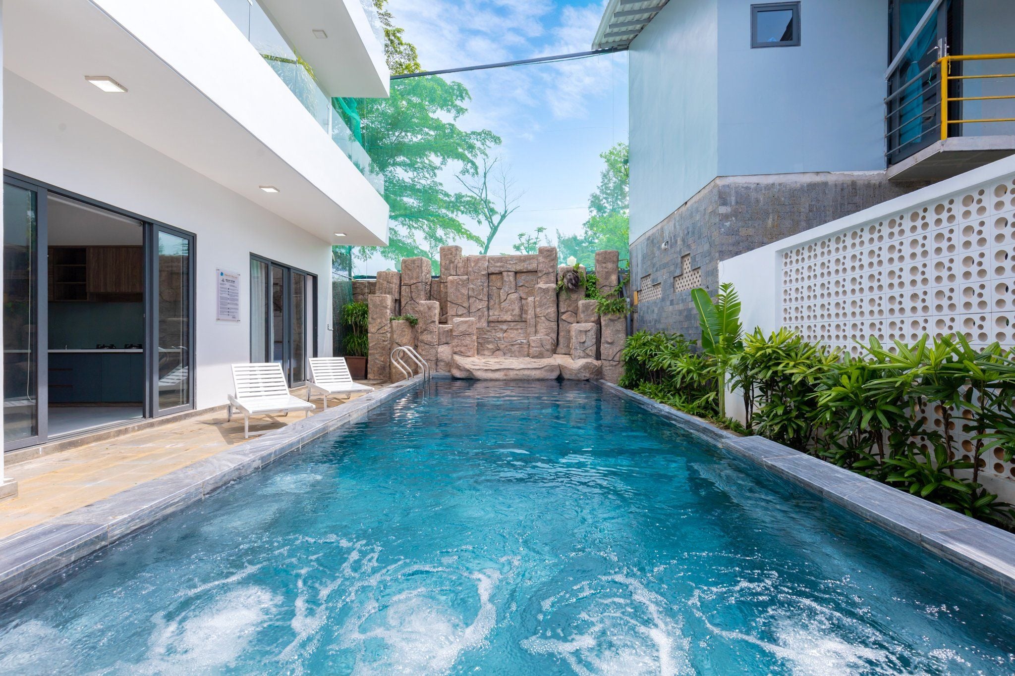 - Hồ bơi rộng 35m2 và không gian vui chơi thoáng mát