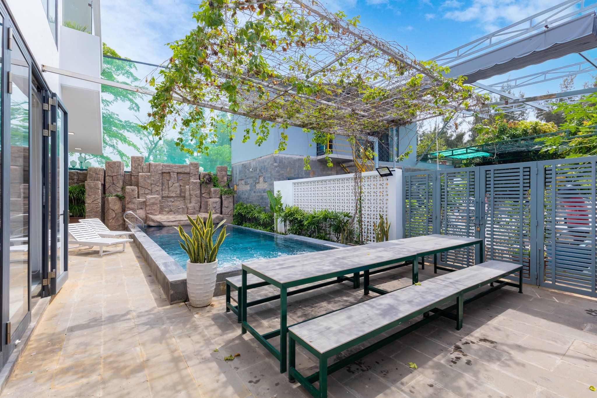 - Sân rộng, thoáng mát thích hợp tổ chức tiệc BBQ ngoài trời