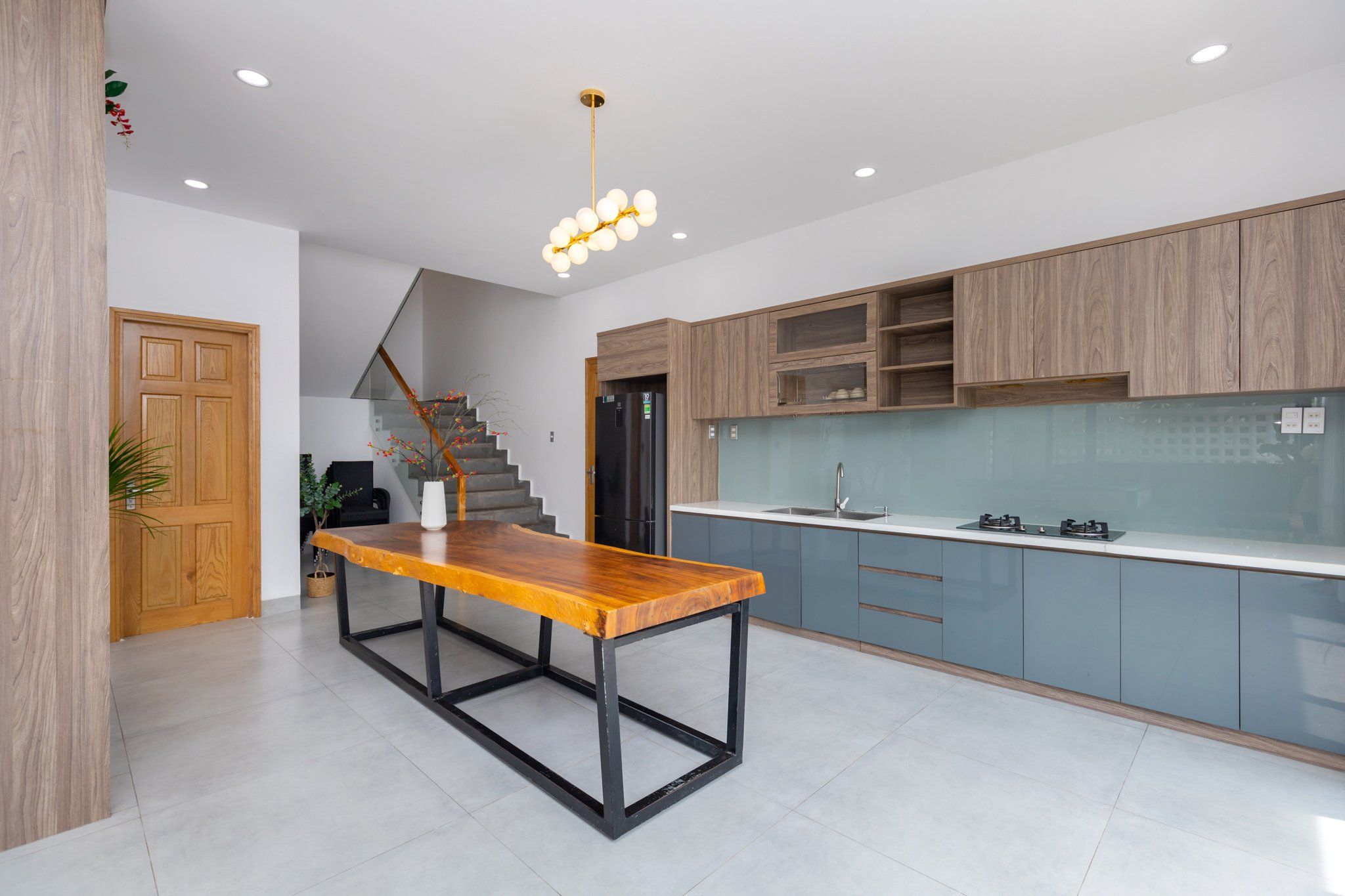 - Bếp cung cấp đầy đủ dụng cụ nấu ăn: lò vi sóng, lò nướng, nồi cơm điện, ấm đun nước điện, tủ lạnh, bát đĩa