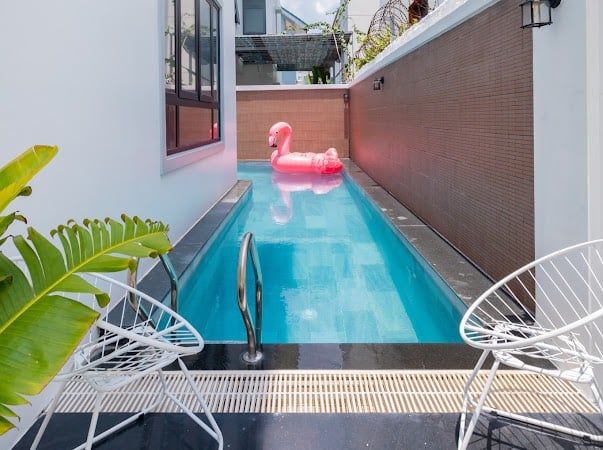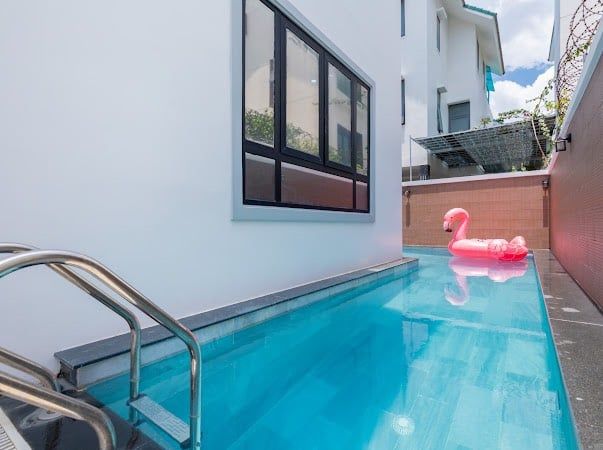 - Hồ bơi rộng 35m2 và không gian vui chơi thoáng mát