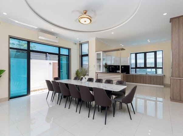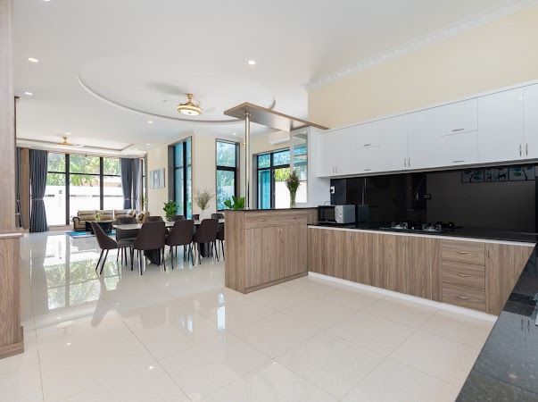 Nhà bếp rộng rãi, được trang bị đầy đủ các thiết bị nấu ăn hiện đại, tạo điều kiện thuận lợi cho việc chuẩn bị những bữa ăn ngon. Hồ bơi ngoài trời sạch sẽ và khu vực vui chơi thoáng mát là nơi lý tưởng để thư giãn và tận hưởng thời gian bên gia đình và bạn bè. Sân vườn rộng lớn, lý tưởng cho các bữa tiệc BBQ ngoài trời, là sự lựa chọn hoàn hảo cho các buổi tụ họp và lễ kỷ niệm.