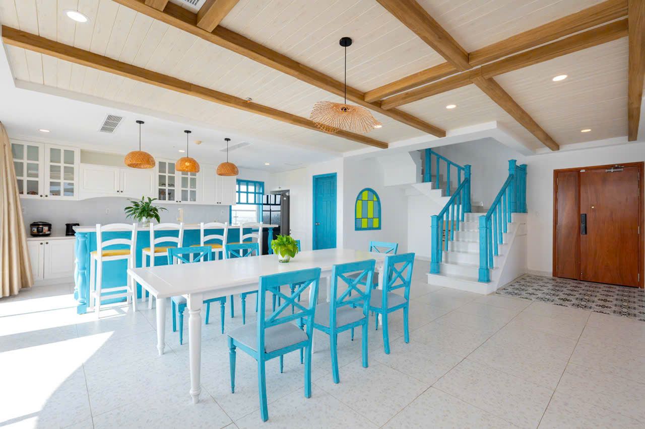 - khu vực bếp ăn tiện nghi và sạch sẽ, với bàn ăn cho 8 người, tủ bếp gỗ, chậu rửa bát và các dụng cụ nấu ăn cơ bản. Bạn có thể tự nấu những món ăn yêu thích của bạn hoặc đặt dịch vụ ăn uống từ các nhà hàng gần đó.