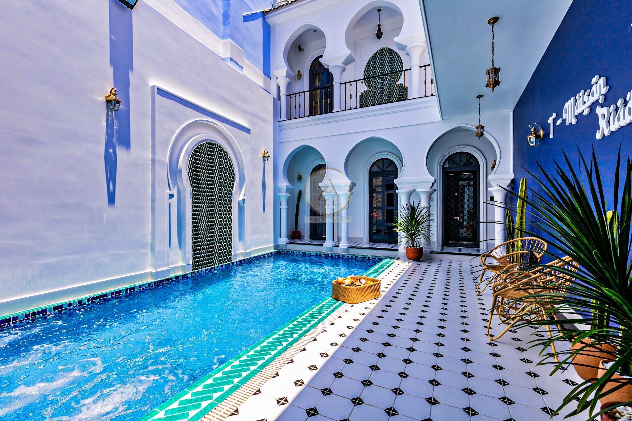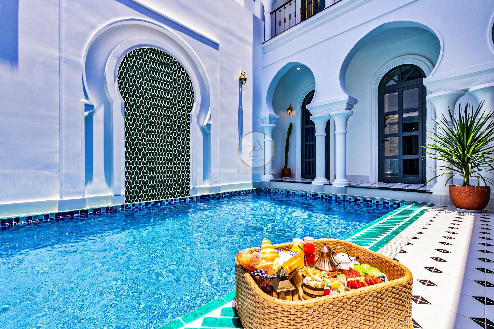 - Hồ bơi có phong cách kiến trúc Ma-rốc đặc trưng.