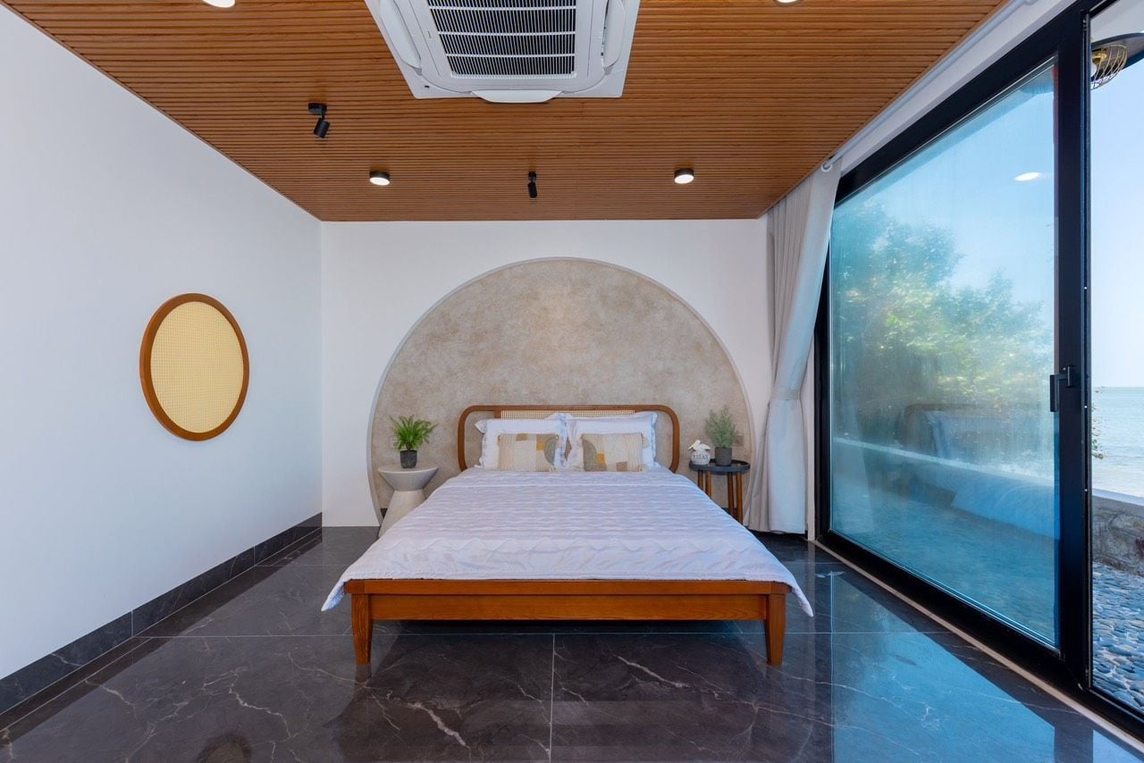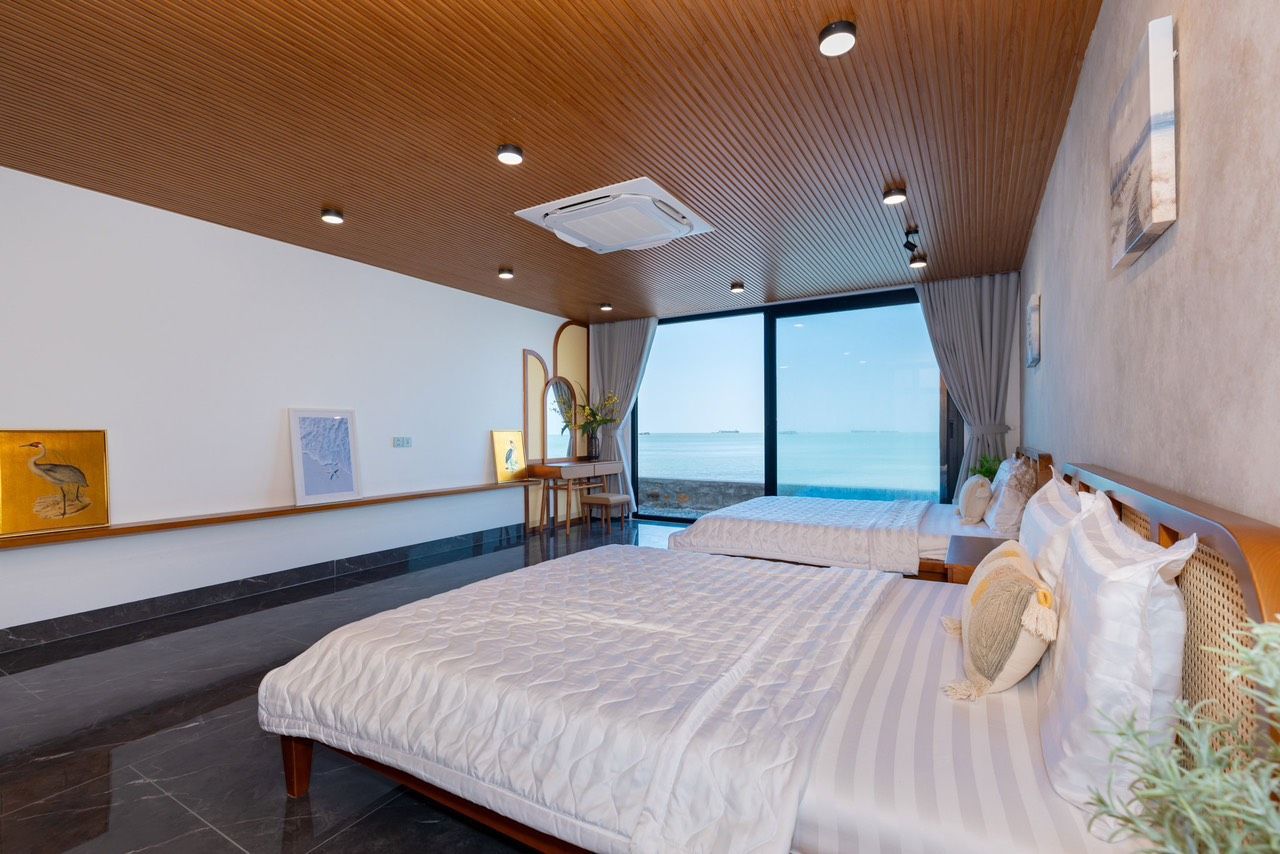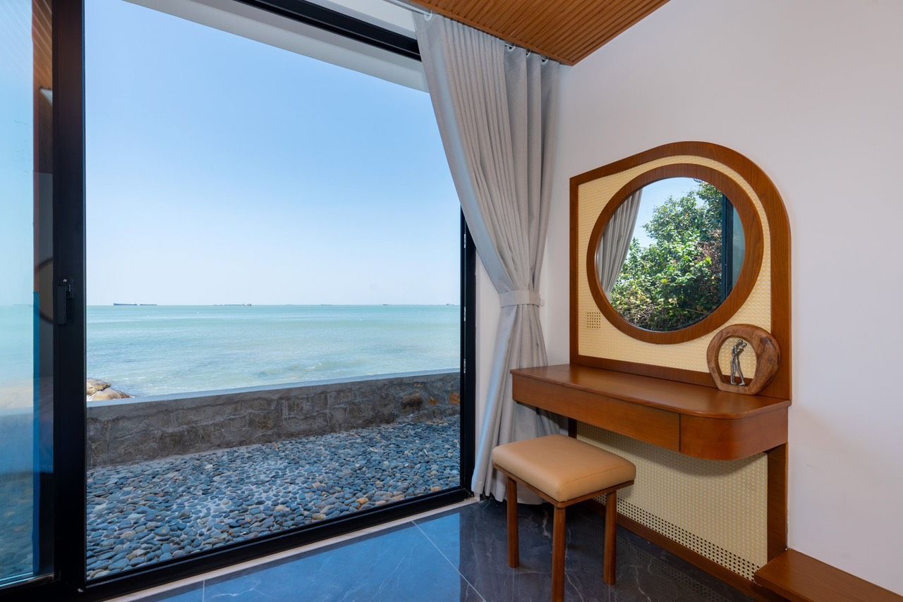 Là một Villa sang trọng và hiện đại, nằm ngay sát bãi biển Bãi Dâu, Vũng Tàu. Biệt thự có diện tích 300 m2, gồm 3 phòng ngủ, 5 nhà vệ sinh, phòng khách, nhà bếp và sân hiên. Mỗi phòng ngủ đều có giường đôi cực lớn, máy lạnh, tivi và phòng tắm riêng. Phòng khách rộng rãi và thoáng mát, có sofa, bàn ăn và cửa sổ lớn nhìn ra hồ bơi và biển. Nhà bếp được trang bị đầy đủ tiện nghi như tủ lạnh, bếp điện, lò vi sóng và máy pha cà phê. Sân hiên là nơi lý tưởng để thư giãn và thưởng thức không khí biển, có ghế đẩu, bàn ghế và máy nướng BBQ. Biệt thự còn có hồ bơi riêng rộng 50 m2, nằm trong khuôn viên xanh mát và yên tĩnh. Từ biệt thự, chỉ cần đi bộ vài bước là đến được bãi biển Bãi Dâu, nơi có cát trắng mịn và nước trong xanh. Đây là sự lựa chọn hoàn hảo cho những ai muốn tận hưởng kỳ nghỉ sang trọng và thoải mái tại Vũng Tàu